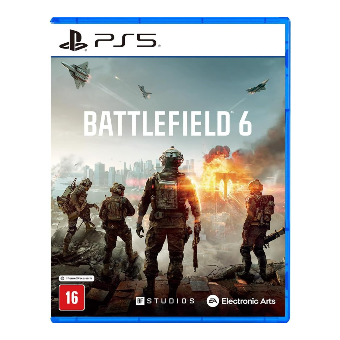 Palavras-chave importantes: battlefield 6 ps5, shooter, guerra moderna, multiplayer 128 jogadores, dualsense, ray tracing, ação intensa, dublado português.